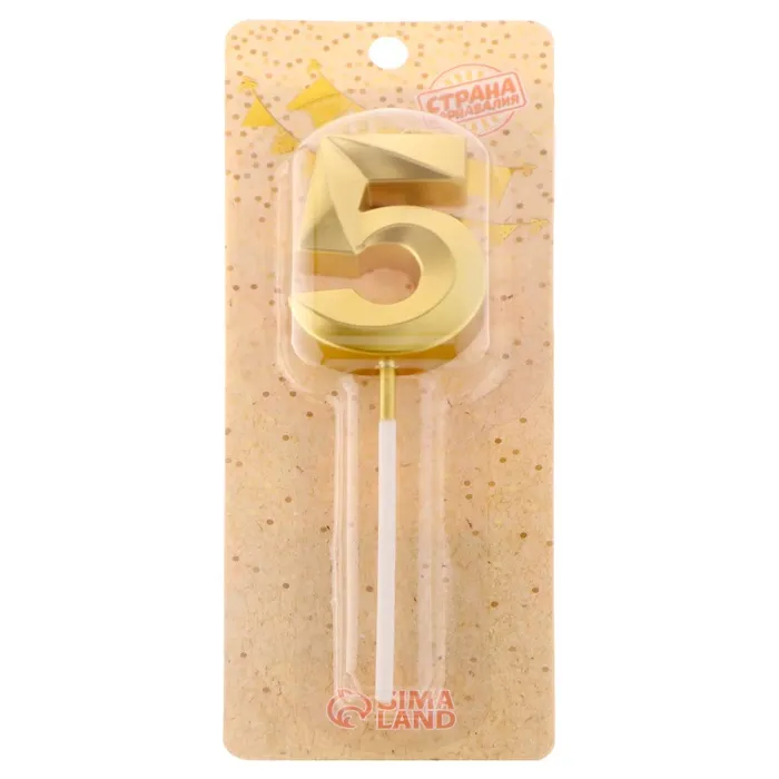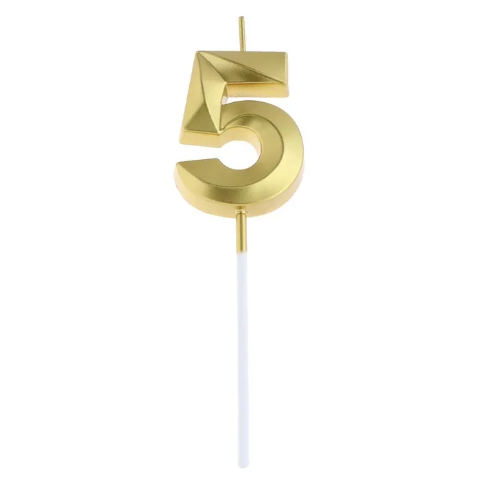 Свеча в торт на шпажке «Цифра 5», золотая, 5 см — Характеристики