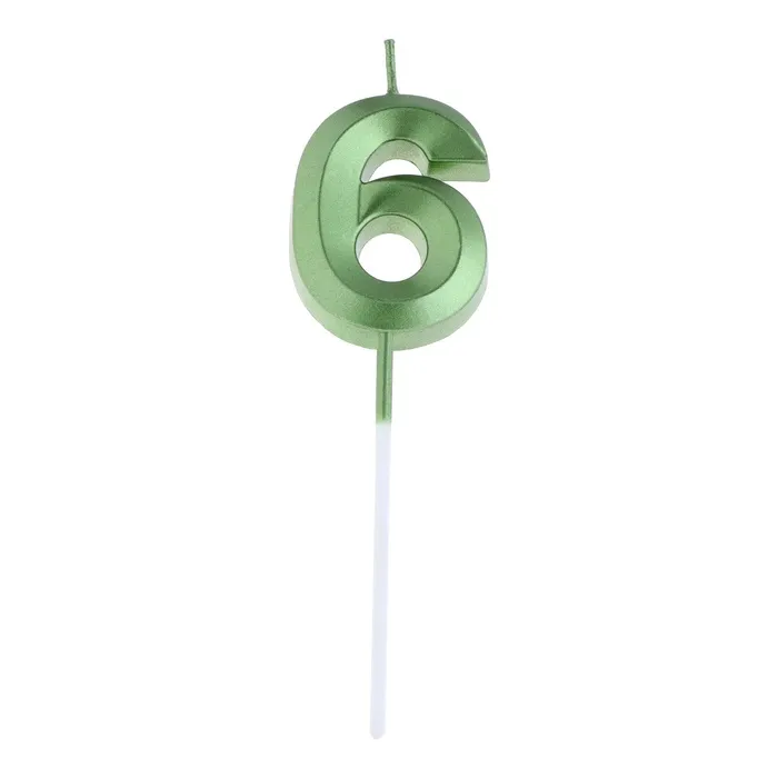 Свеча в торт на шпажке «Цифра 6», зеленая, 5 см