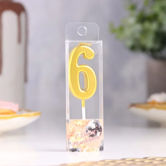 Свеча в торт на шпажке «Цифра 6», золотая, 4.5×2.5 см — Характеристики