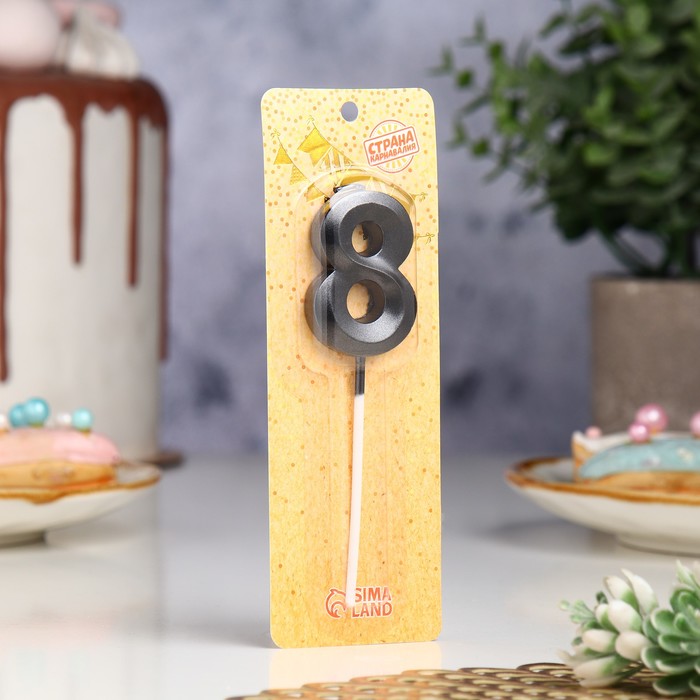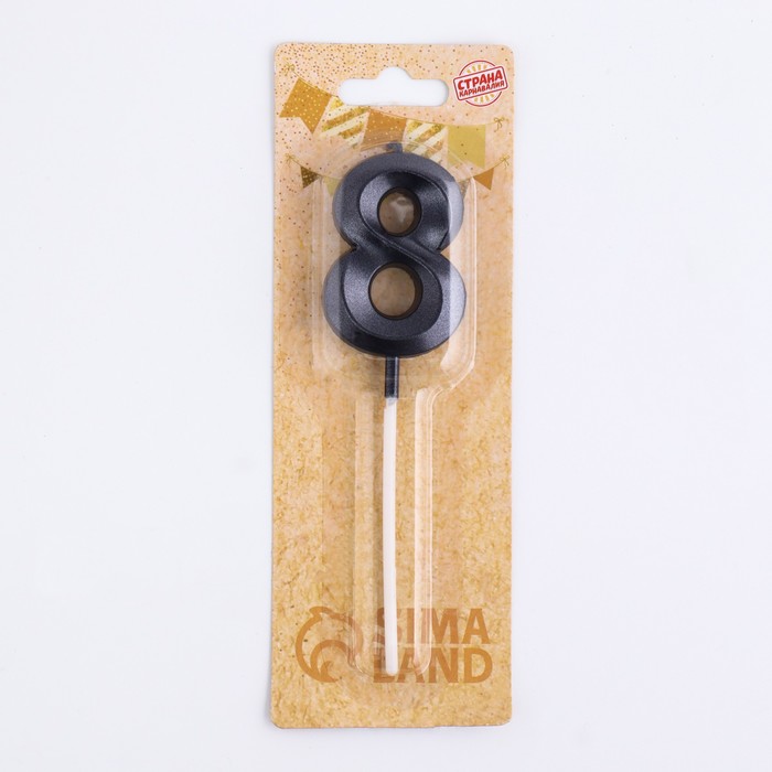 Свеча в торт на шпажке «Цифра 8», черная, 5 см