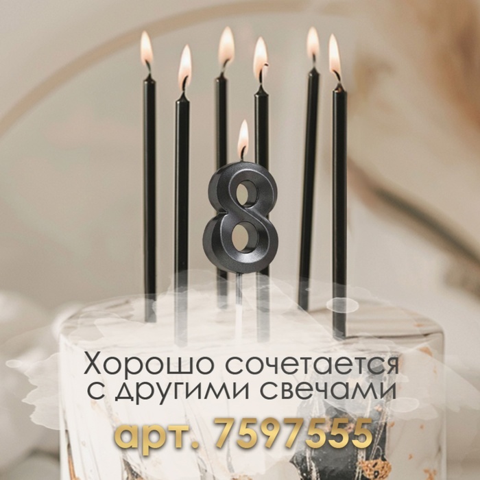 Свеча в торт на шпажке «Цифра 8», черная, 5 см — Характеристики
