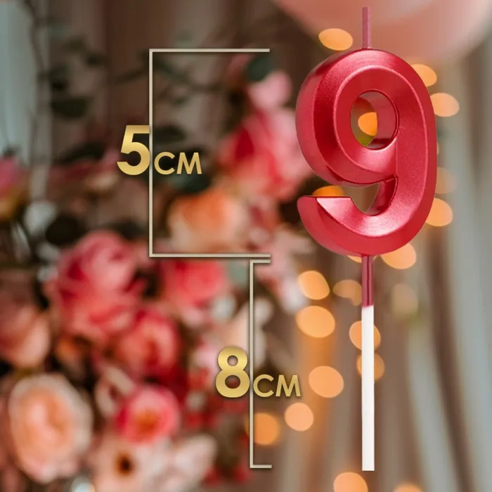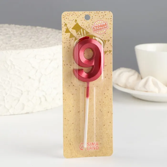 Свеча в торт на шпажке «Цифра 9», красная, 5 см — Характеристики