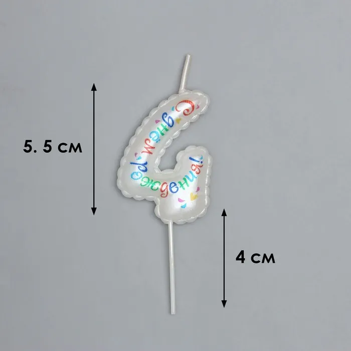 Свеча в торт на шпажке «Воздушная цифра.С Днем Рождения!», цифра 4 — Характеристики