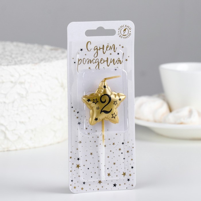 Свеча в торт на шпажке «Воздушная звездочка», цифра 2, 3.5 см, золото — Характеристики