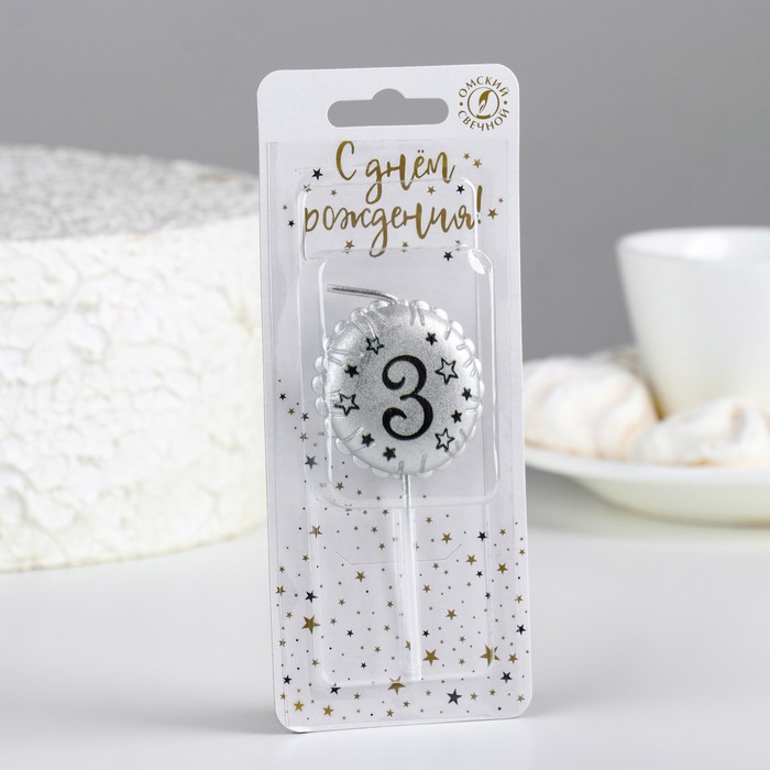 Свеча в торт на шпажке «Воздушный шарик», цифра 3, 3.5 см, серебро — Характеристики