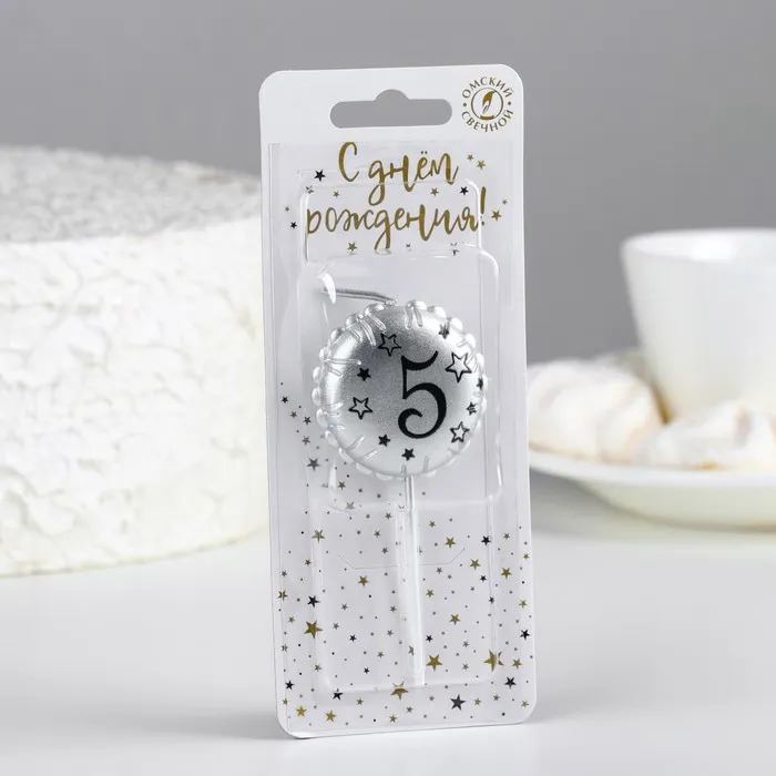 Свеча в торт на шпажке «Воздушный шарик», цифра 5, 3.5 см, серебро — Характеристики