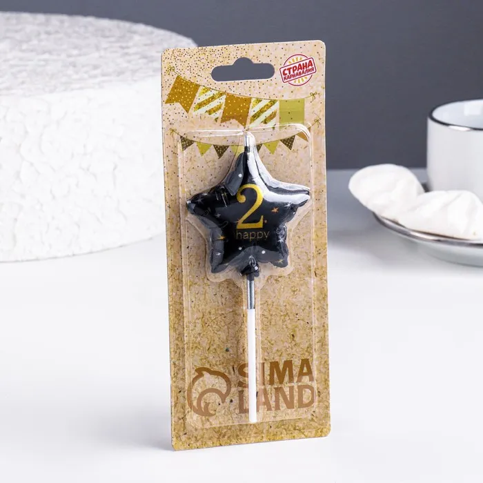 Свеча в торт на шпажке «Воздушный шарик.Звезда», цифра 2, 5.5 см, черная с золотом — Характеристики
