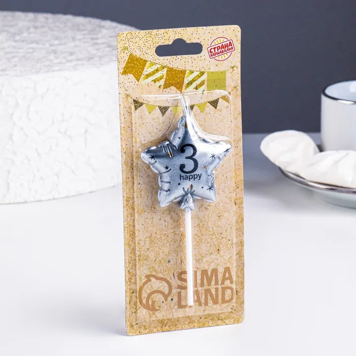 Свеча в торт на шпажке «Воздушный шарик.Звезда», цифра 3, 5.5 см, серебряная — Характеристики