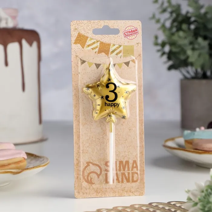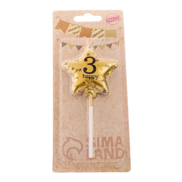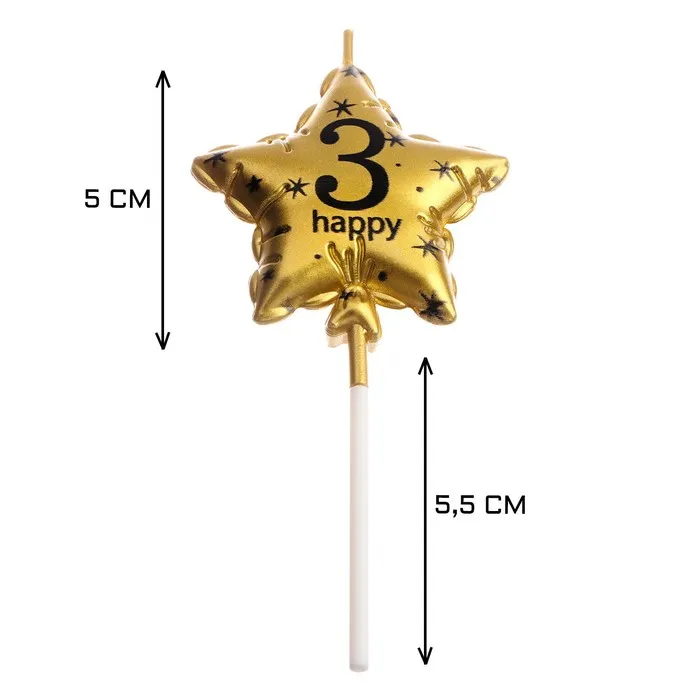 Свеча в торт на шпажке «Воздушный шарик.Звезда», цифра 3, 5.5 см, золотая — Характеристики