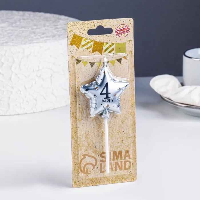 Свеча в торт на шпажке «Воздушный шарик.Звезда», цифра 4, 5.5 см, серебряная — Характеристики