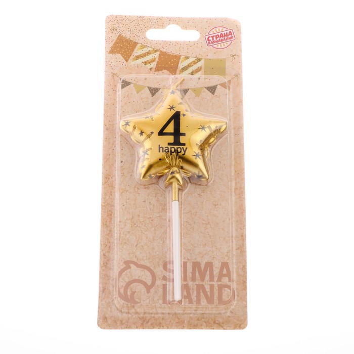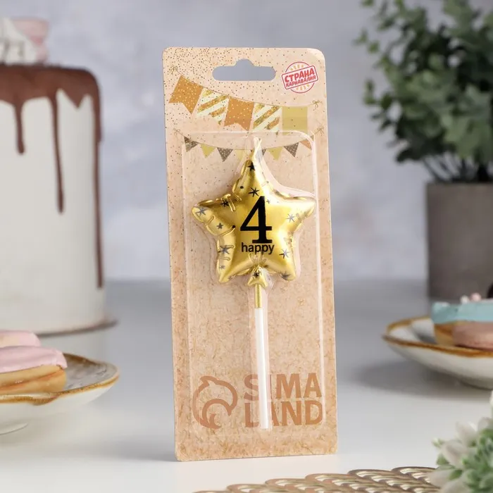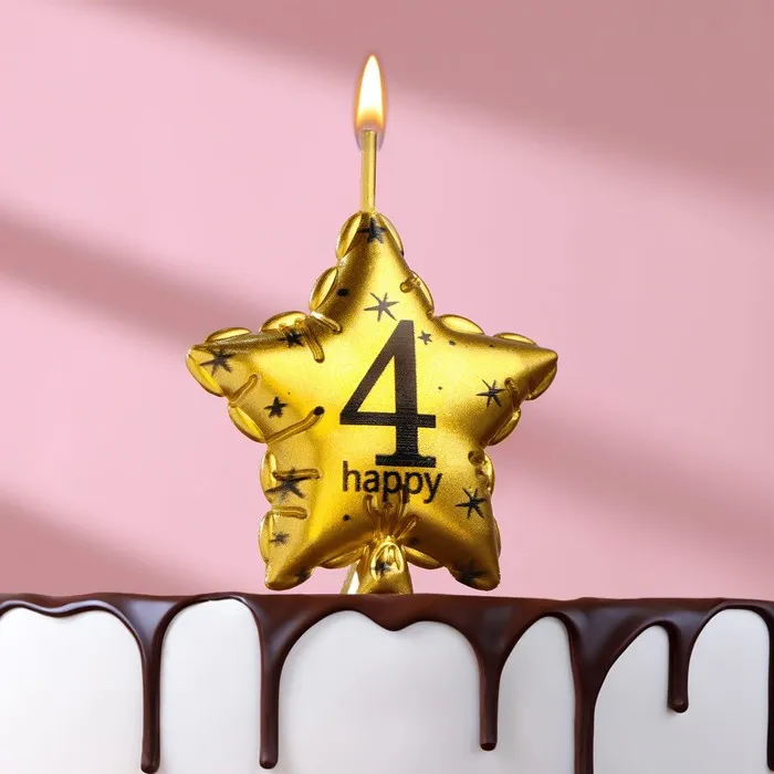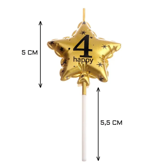 Свеча в торт на шпажке «Воздушный шарик.Звезда», цифра 4, 5.5 см, золотая — Характеристики