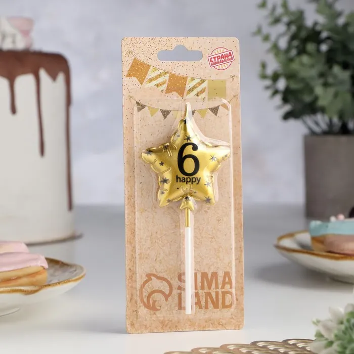 Свеча в торт на шпажке «Воздушный шарик.Звезда», цифра 6, 5.5 см, золотая — Характеристики