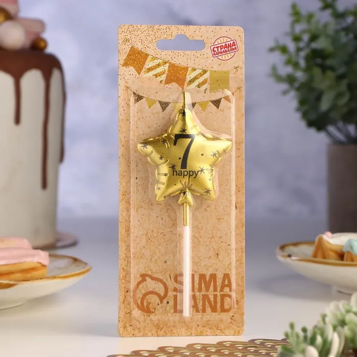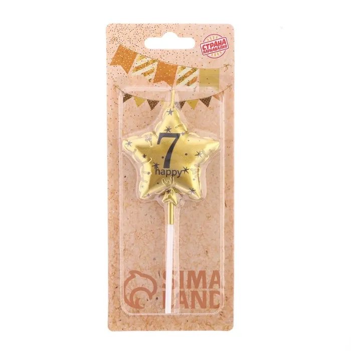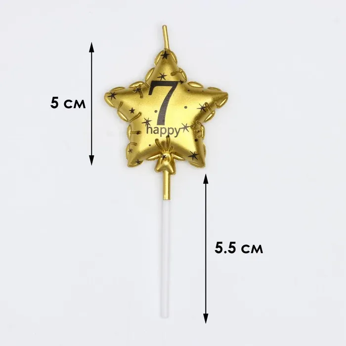 Свеча в торт на шпажке «Воздушный шарик.Звезда», цифра 7, 11×5 см, золотая — Характеристики