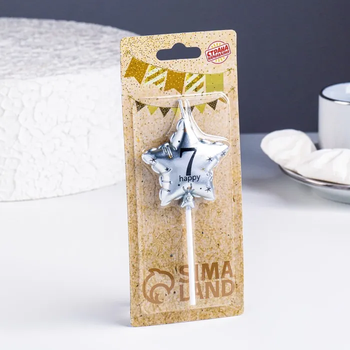 Свеча в торт на шпажке «Воздушный шарик.Звезда», цифра 7, 5.5 см, серебряная — Характеристики