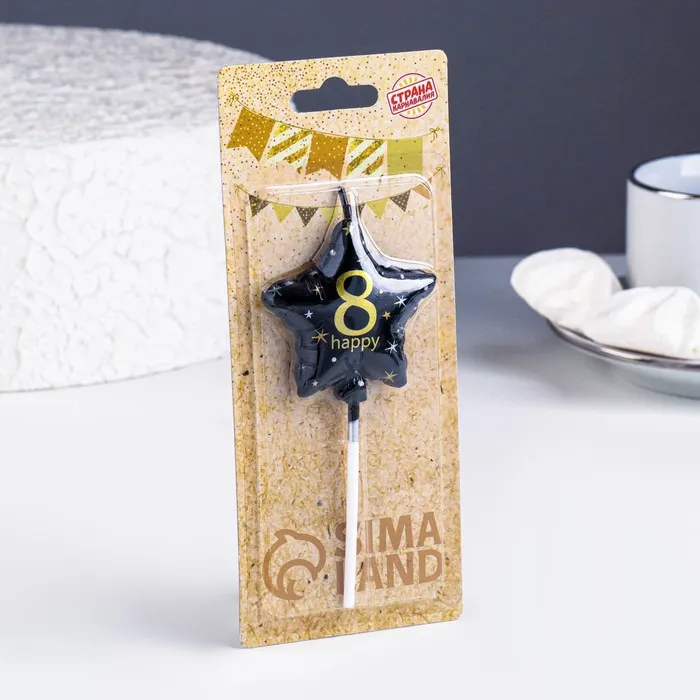Свеча в торт на шпажке «Воздушный шарик.Звезда», цифра 8, 5.5 см, черная с золотом — Характеристики