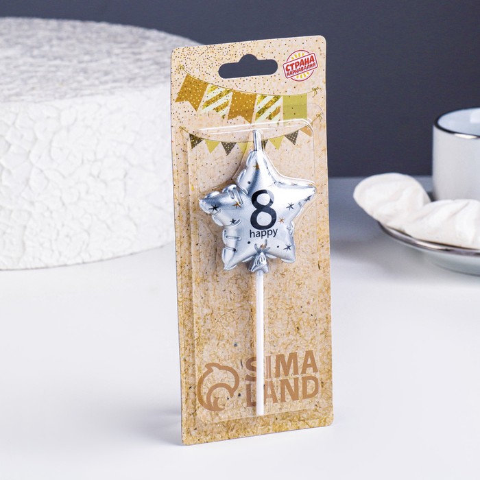 Свеча в торт на шпажке «Воздушный шарик.Звезда», цифра 8, 5.5 см, серебряная