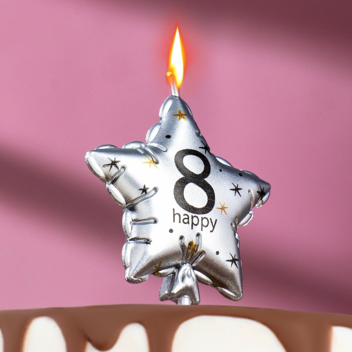 Свеча в торт на шпажке «Воздушный шарик.Звезда», цифра 8, 5.5 см, серебряная — Характеристики