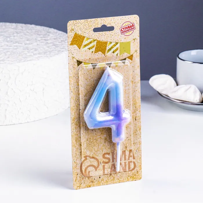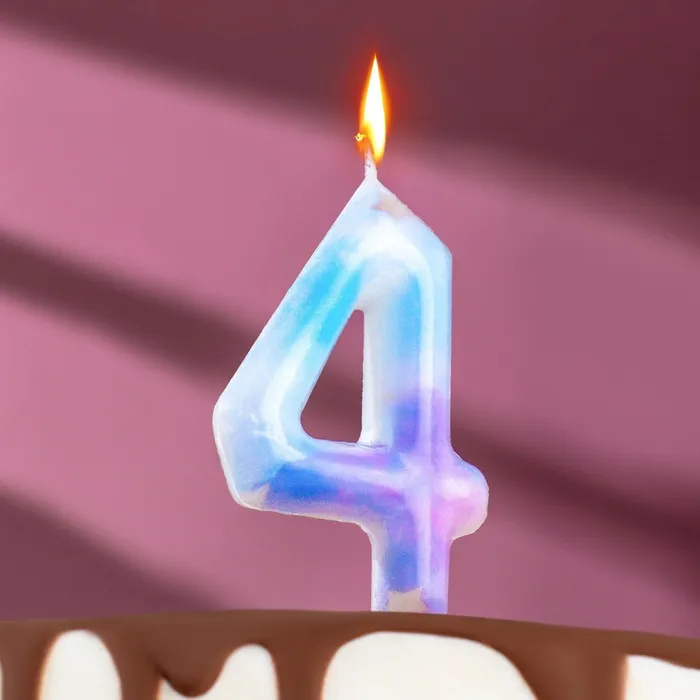 Свеча в торт на шпажке «Звездопад», цифра 4, 9 см, ГИГАНТ