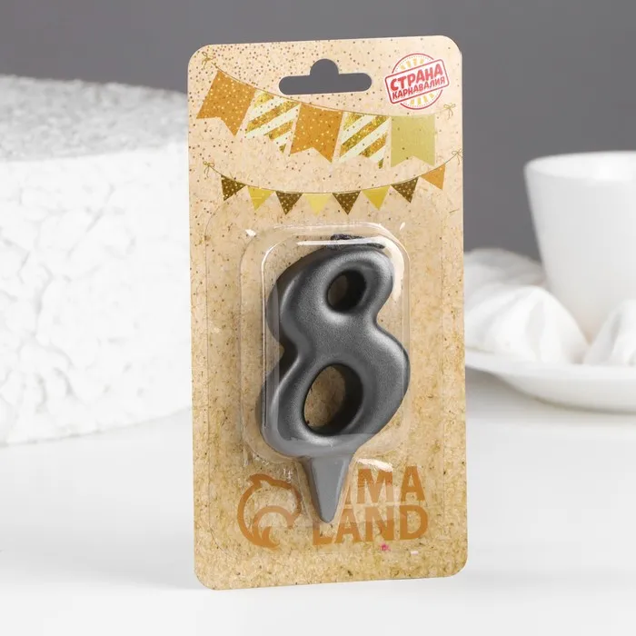 Свеча в торт «Овал»,цифра 8, графит, 5.5 см — Характеристики