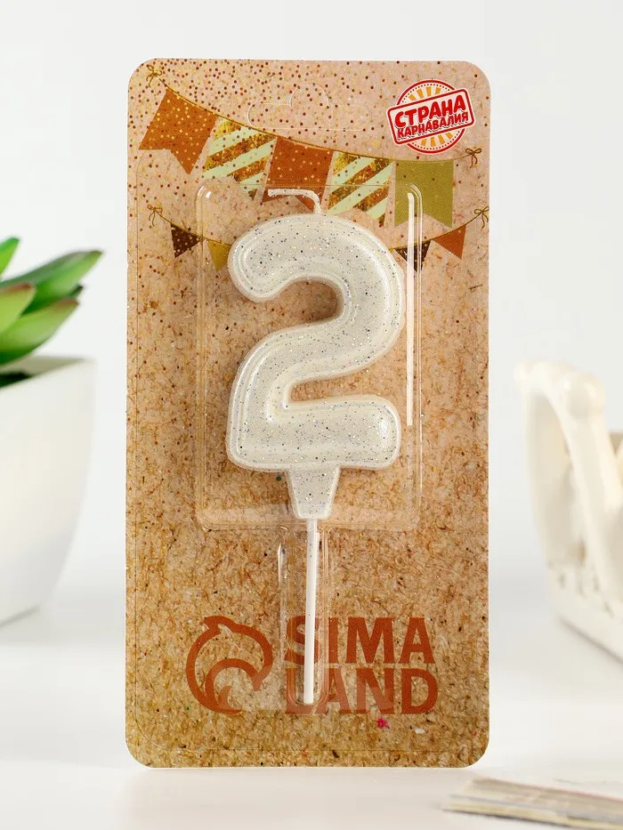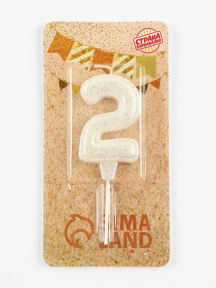 Свеча в торт «Праздник» цифра 2, жемчужный перламутр с блестками — Характеристики