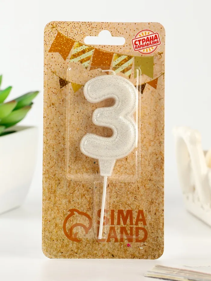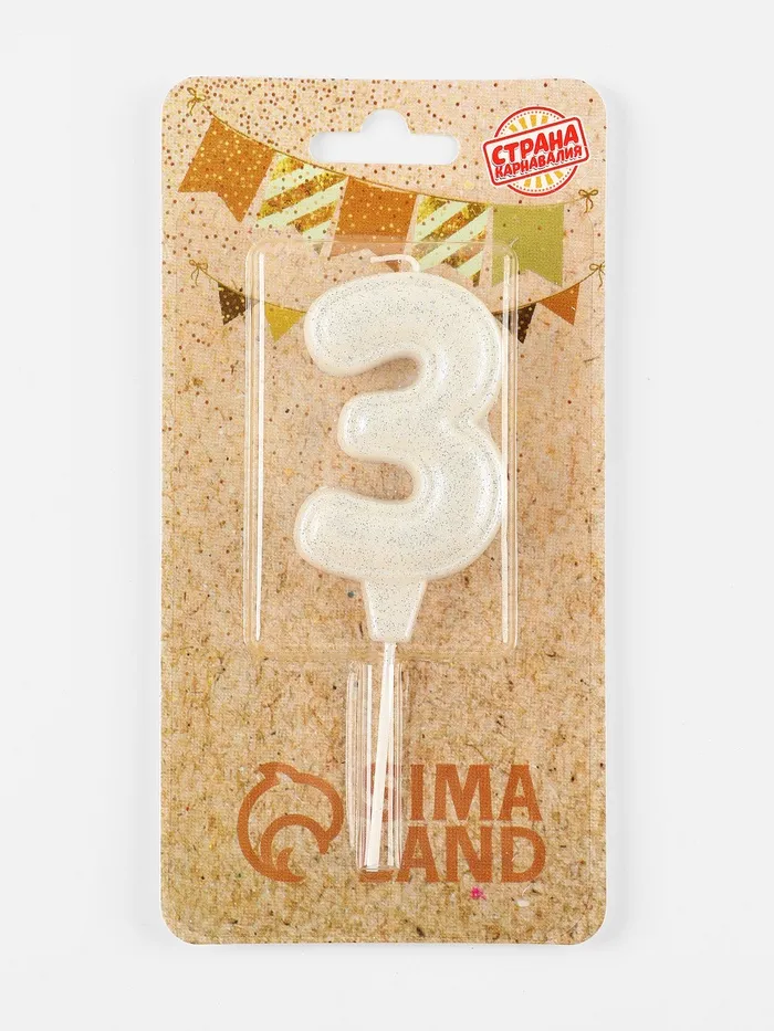 Свеча в торт «Праздник» цифра 3, жемчужный перламутр с блестками — Характеристики