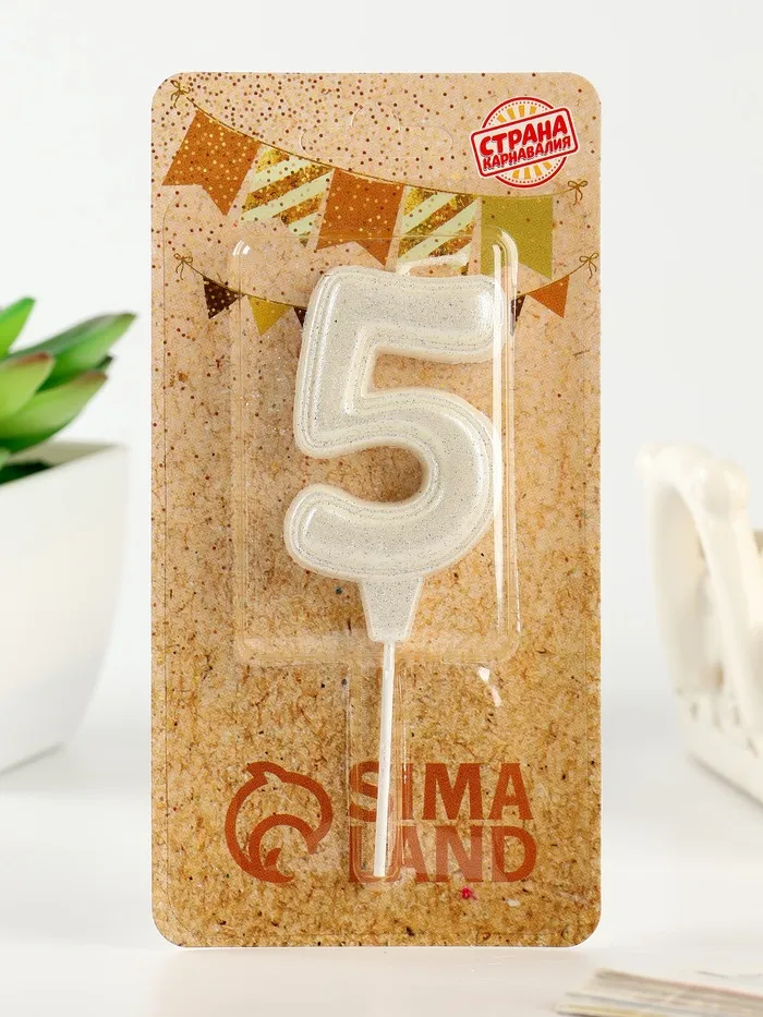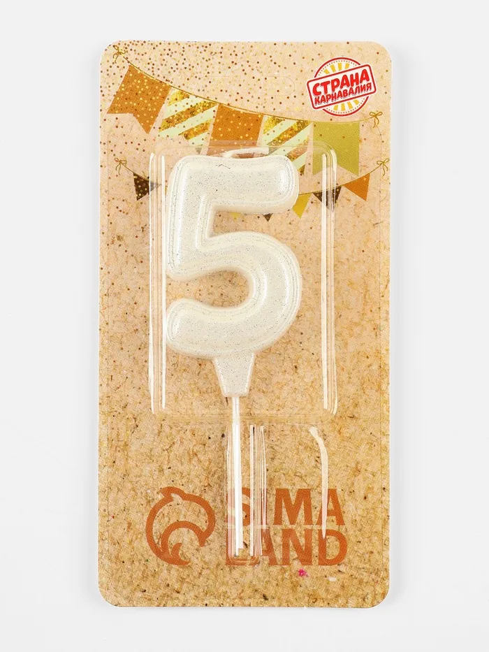 Свеча в торт «Праздник» цифра 5, жемчужный перламутр с блестками — Характеристики