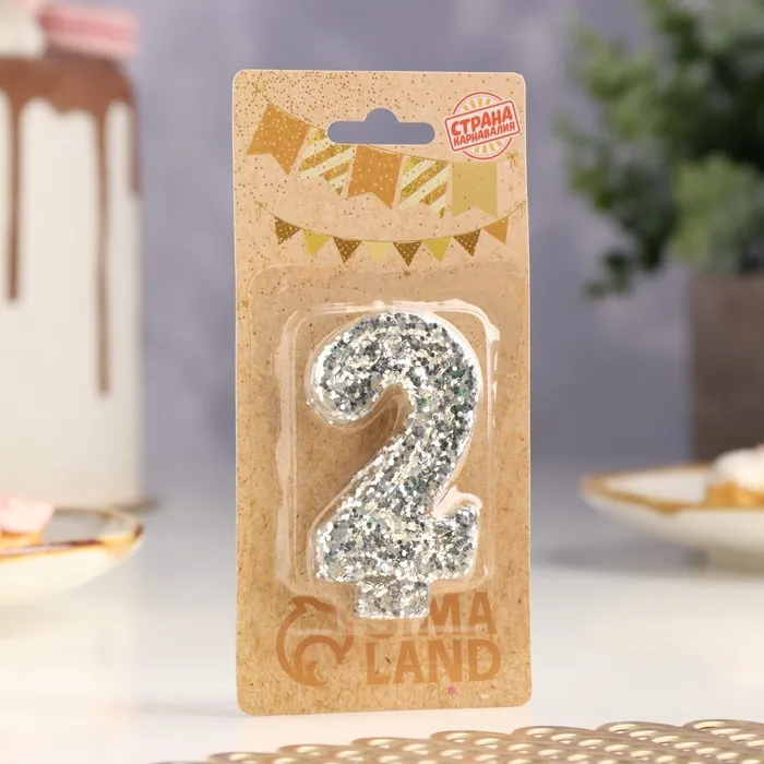 Свеча в торт с блестками «Цифра 2», 6.5×4 см, серебряная — Характеристики