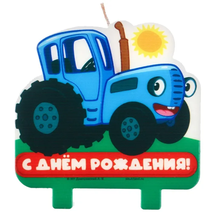 Свеча в торт «С Днем Рождения!», Синий трактор, 9.5×10 см — Характеристики