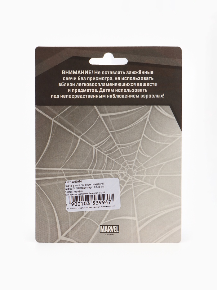 Свеча в торт «С Днем рождения», цифра 5, Человек-паук, 8.5×5 см — Характеристики