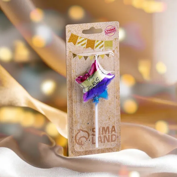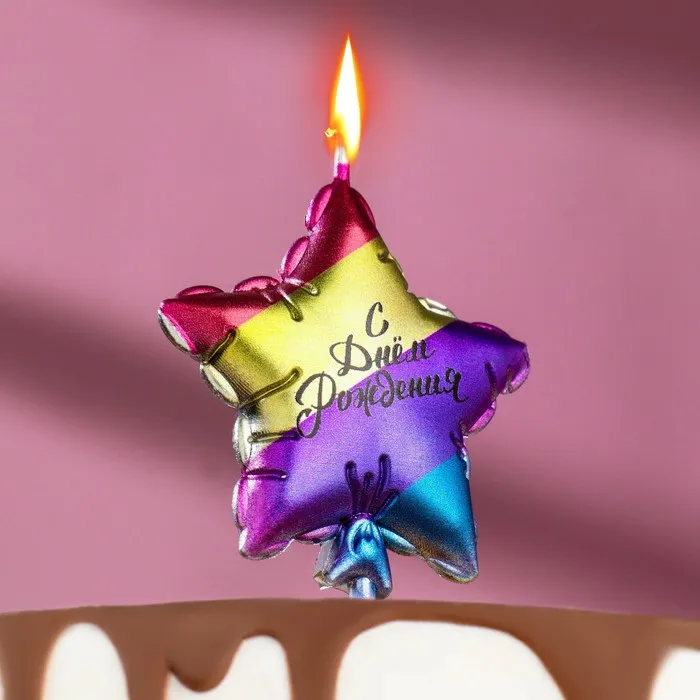 Свеча в торт «С днем рождения. Звезда», 5.5 см, разноцветная — Характеристики