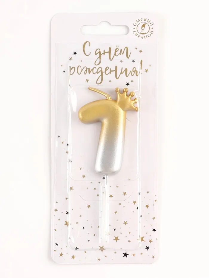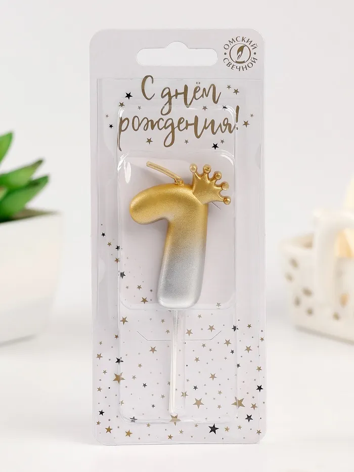Свеча в торт «С короной», цифра 1, золото - серебро — Характеристики