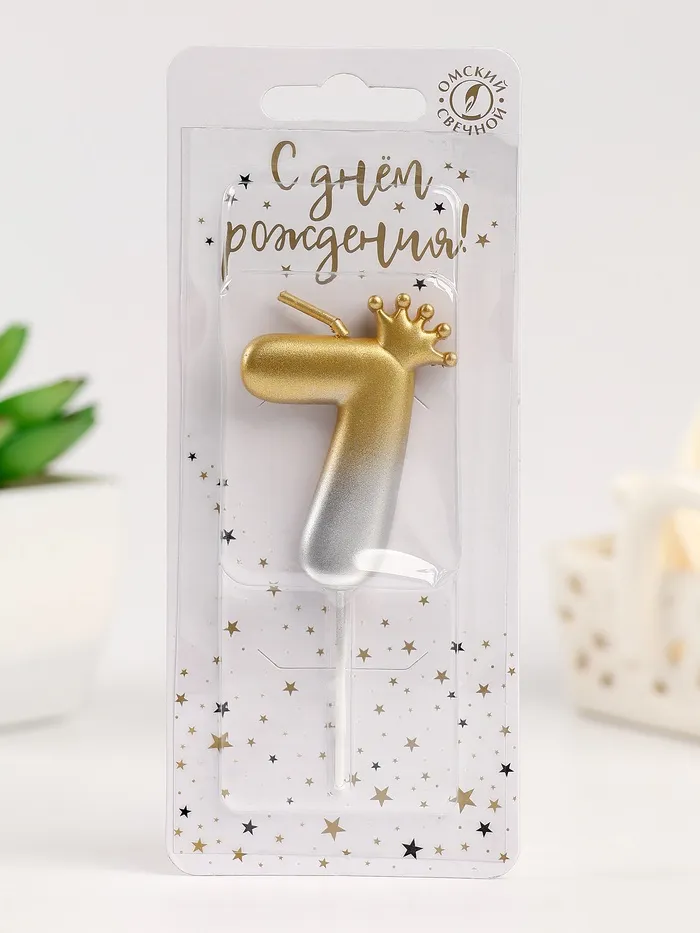 Свеча в торт «С короной», цифра 7, золото - серебро — Характеристики