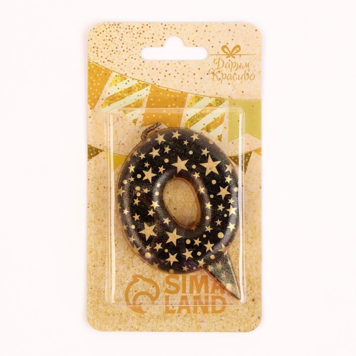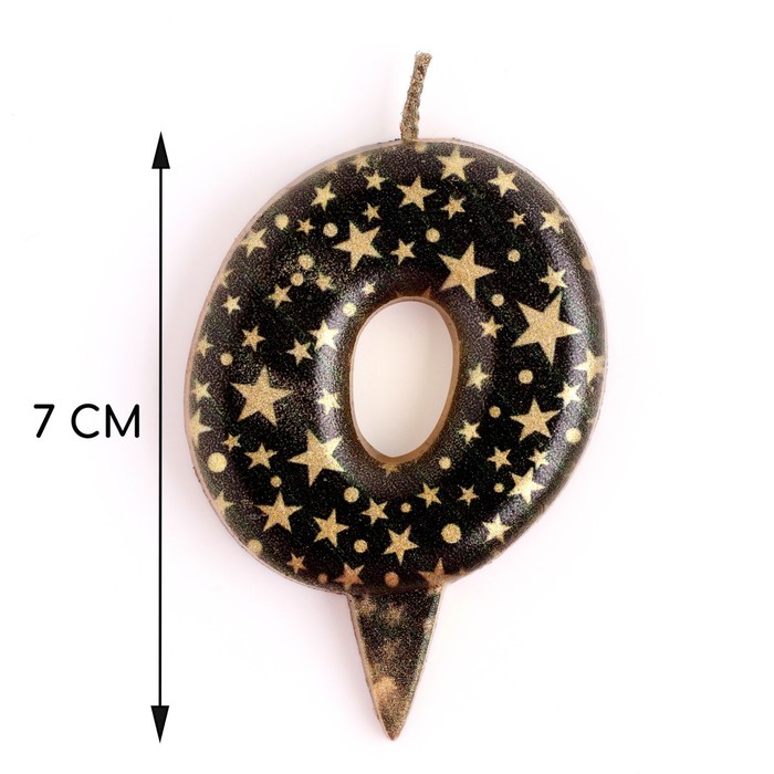Свеча в торт «Саната», цифра 0, черная с золотыми звездами, 5.5 см — Характеристики