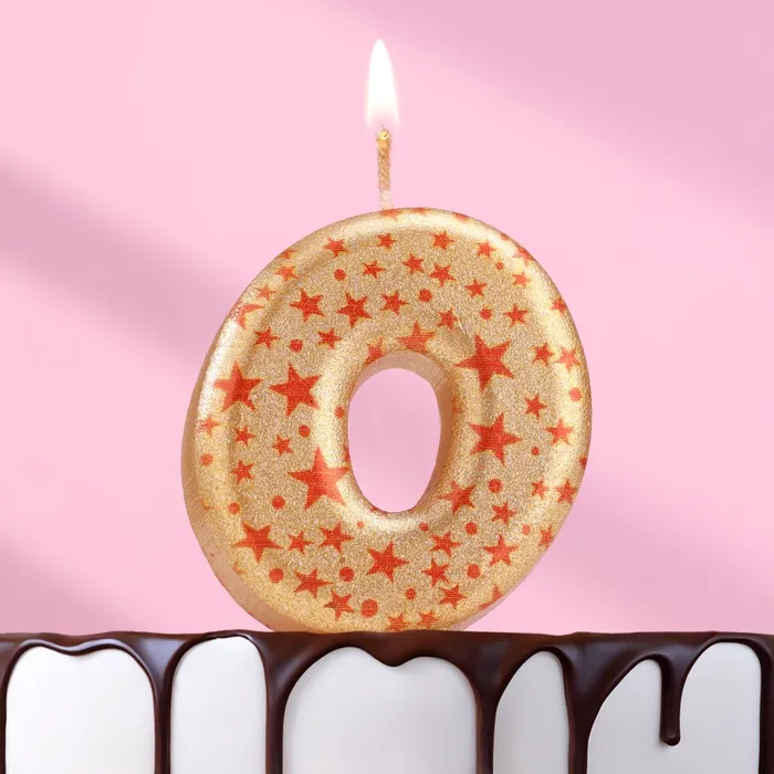 Свеча в торт «Саната», цифра 0, золотая с красными звездами, 5.5 см — Характеристики