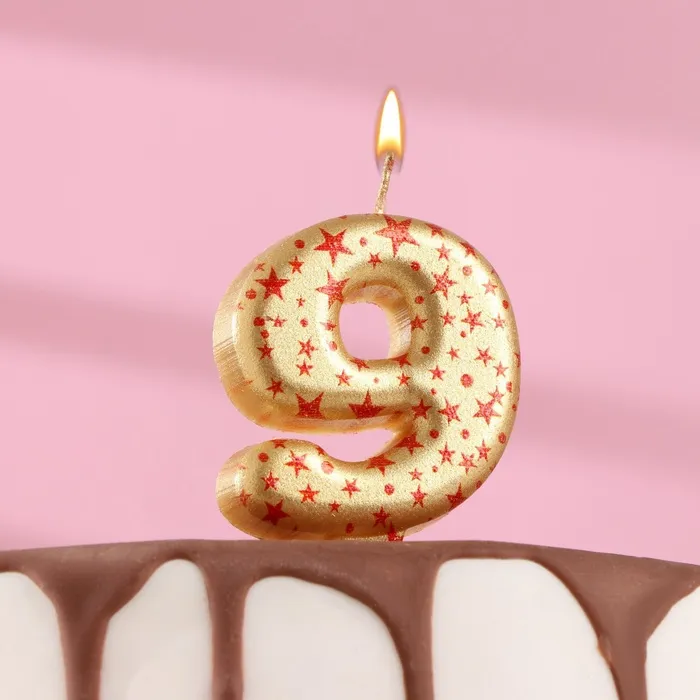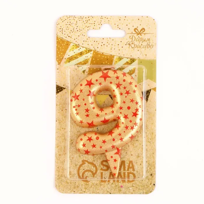 Свеча в торт «Саната», цифра 9, золотая с красными звездами, 5.5 см — Характеристики