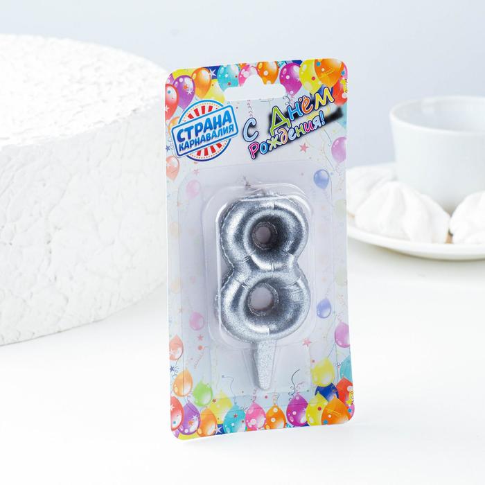 Свеча в торт «Шары», цифра 8, серебро, 5.5 см