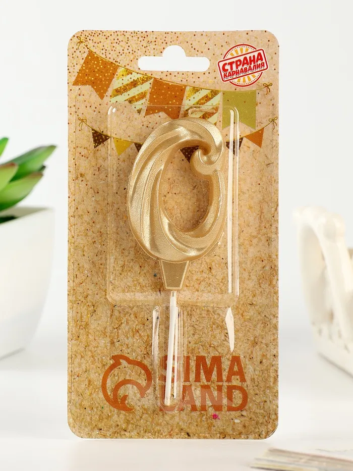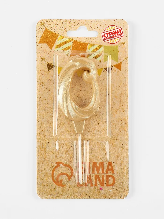 Свеча в торт «Театральная», цифра 0, золотой металлик — Характеристики