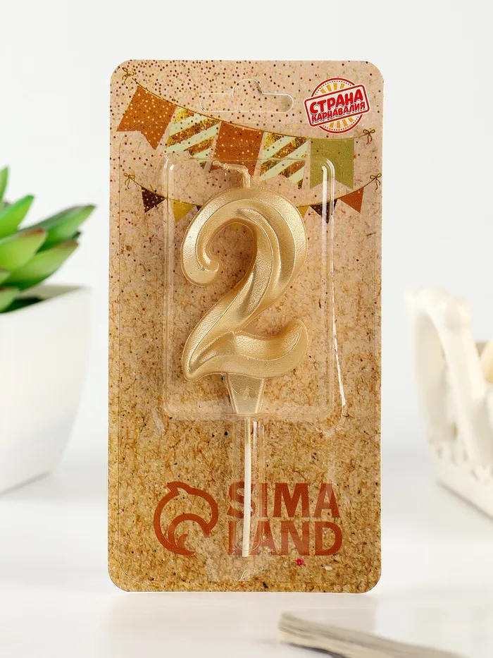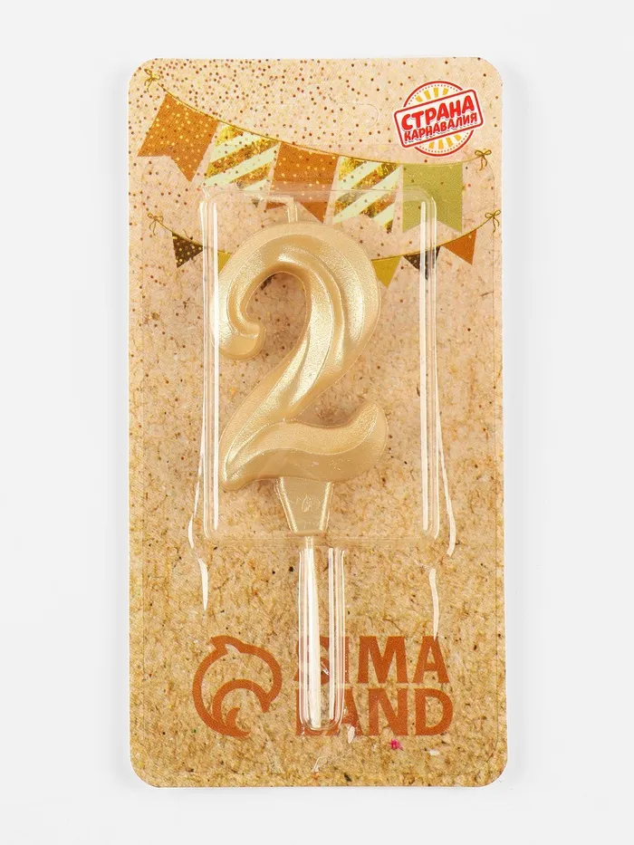 Свеча в торт «Театральная», цифра 2, золотой металлик — Характеристики