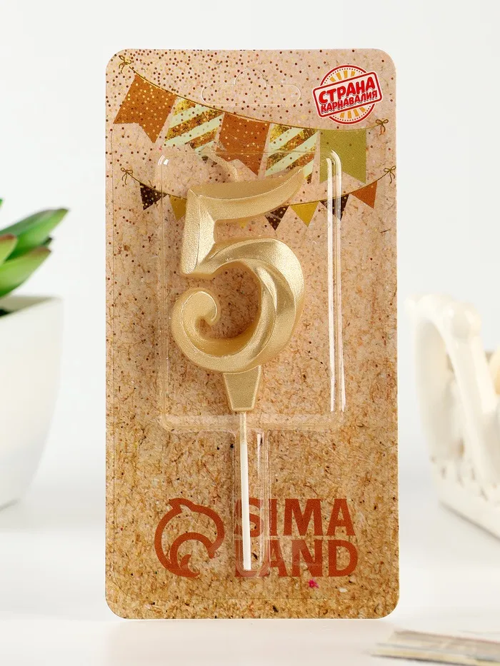 Свеча в торт «Театральная», цифра 5, золотой металлик — Характеристики
