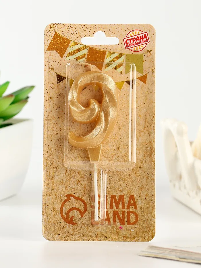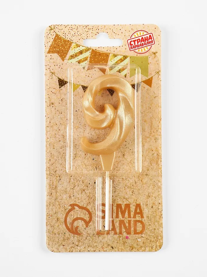 Свеча в торт «Театральная», цифра 9, золотой металлик — Характеристики