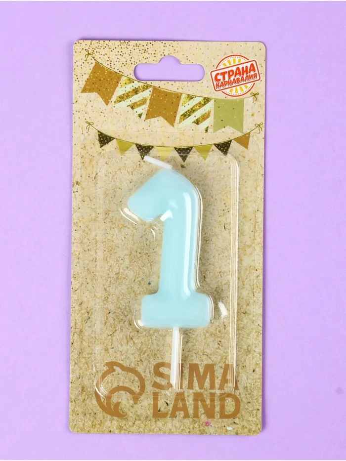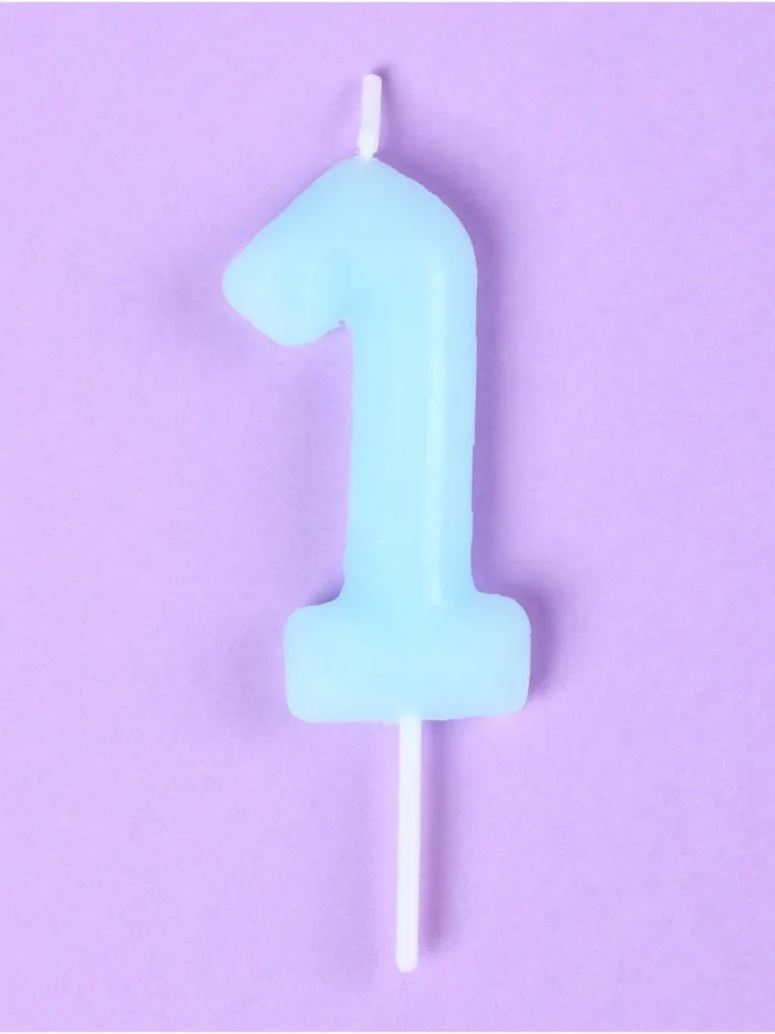Свеча в торт «Цифра 1», светящаяся голубая, 9 см — Характеристики