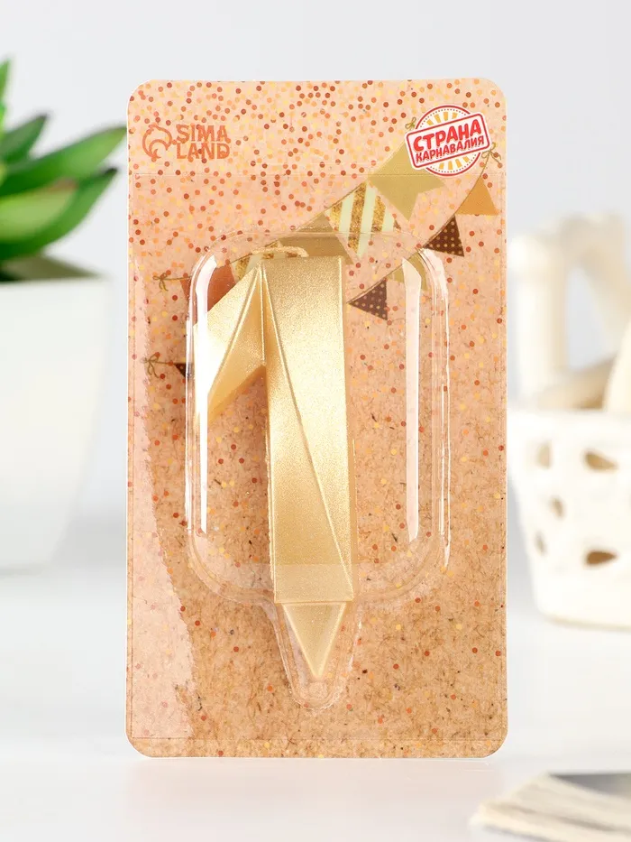 Свеча в торт «Цифра 1», золотая, 6.5 см — Характеристики