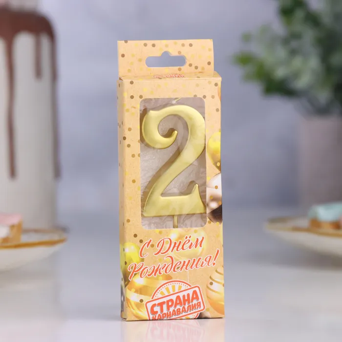 Свеча в торт «Цифра 2», 5.3 см, золотая — Характеристики