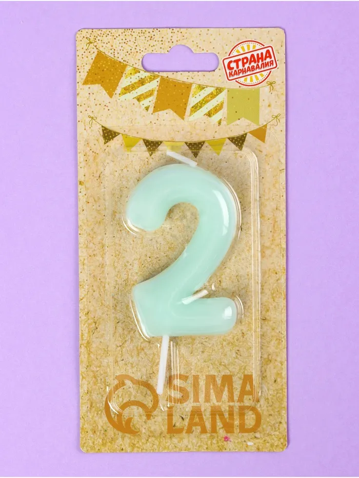 Свеча в торт «Цифра 2», светящаяся голубая, 9 см — Характеристики
