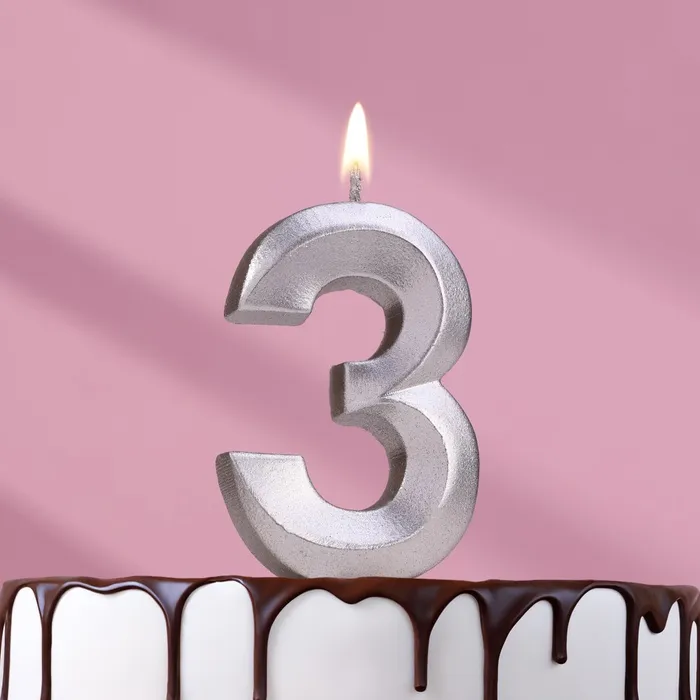 Свеча в торт «Цифра 3», серебряная, 6.5 см — Характеристики