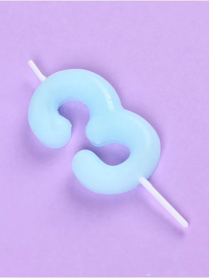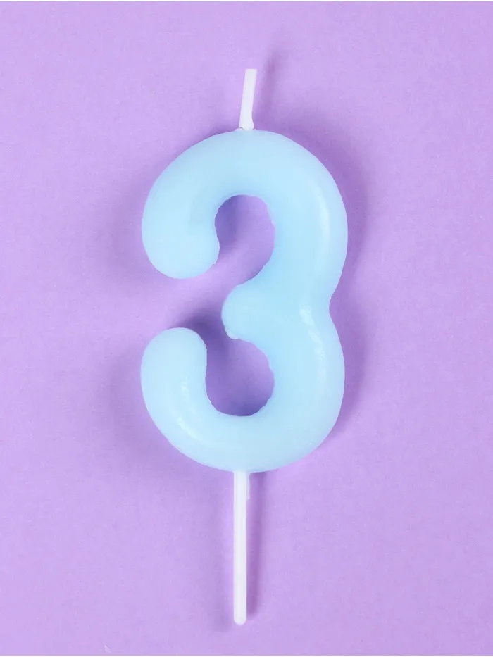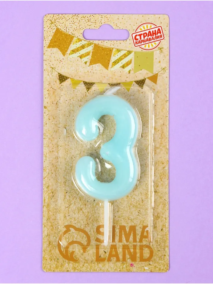 Свеча в торт «Цифра 3», светящаяся голубая, 9 см — Характеристики