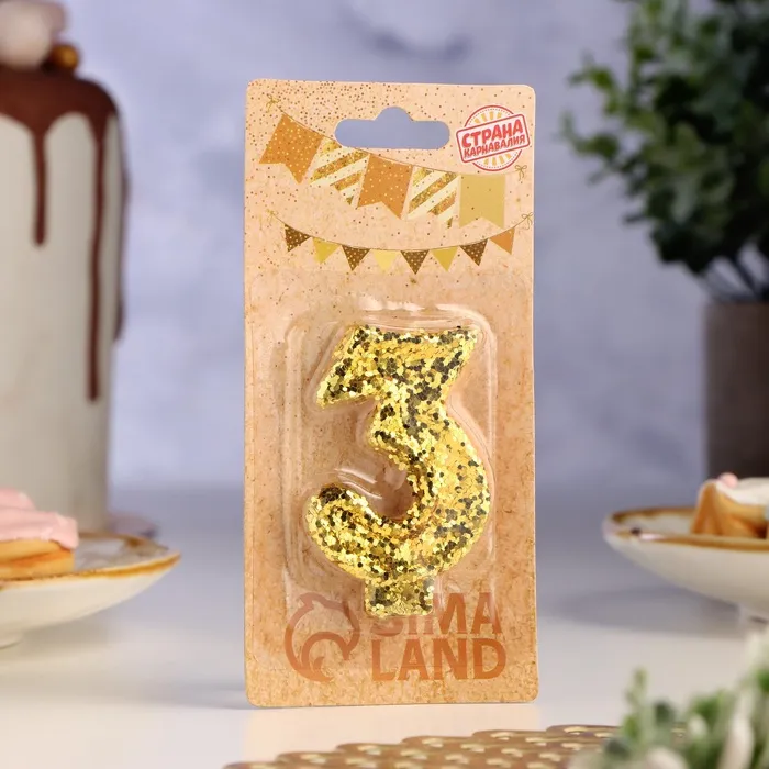 Свеча в торт «Цифра 3», золотая, 5.5 см — Характеристики