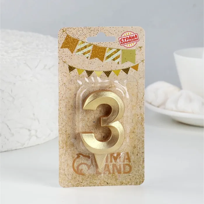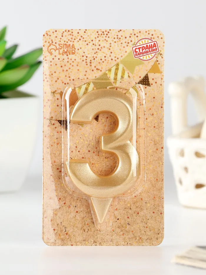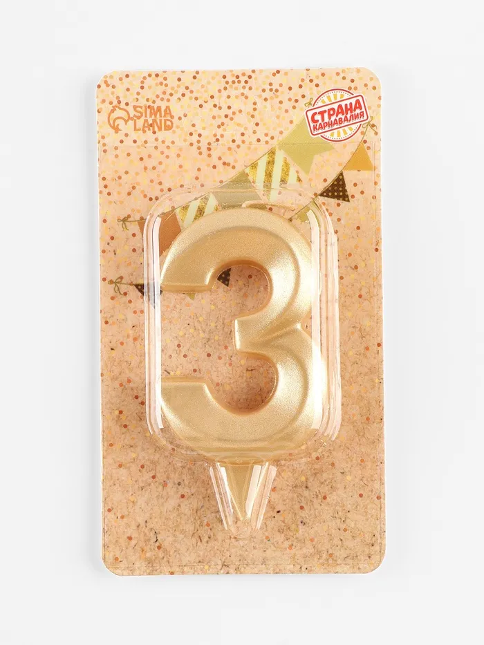 Свеча в торт «Цифра 3», золотая, 6.5 см — Характеристики