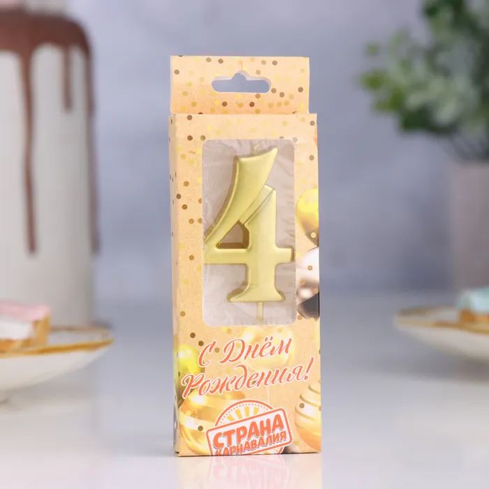 Свеча в торт «Цифра 4», 5.3 см, золотая — Характеристики
