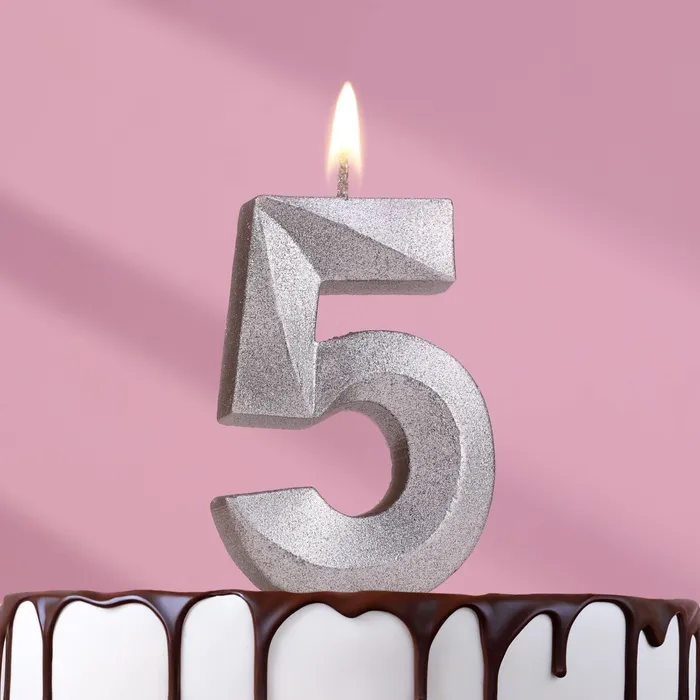 Свеча в торт «Цифра 5», серебряная, 6.5 см — Характеристики
